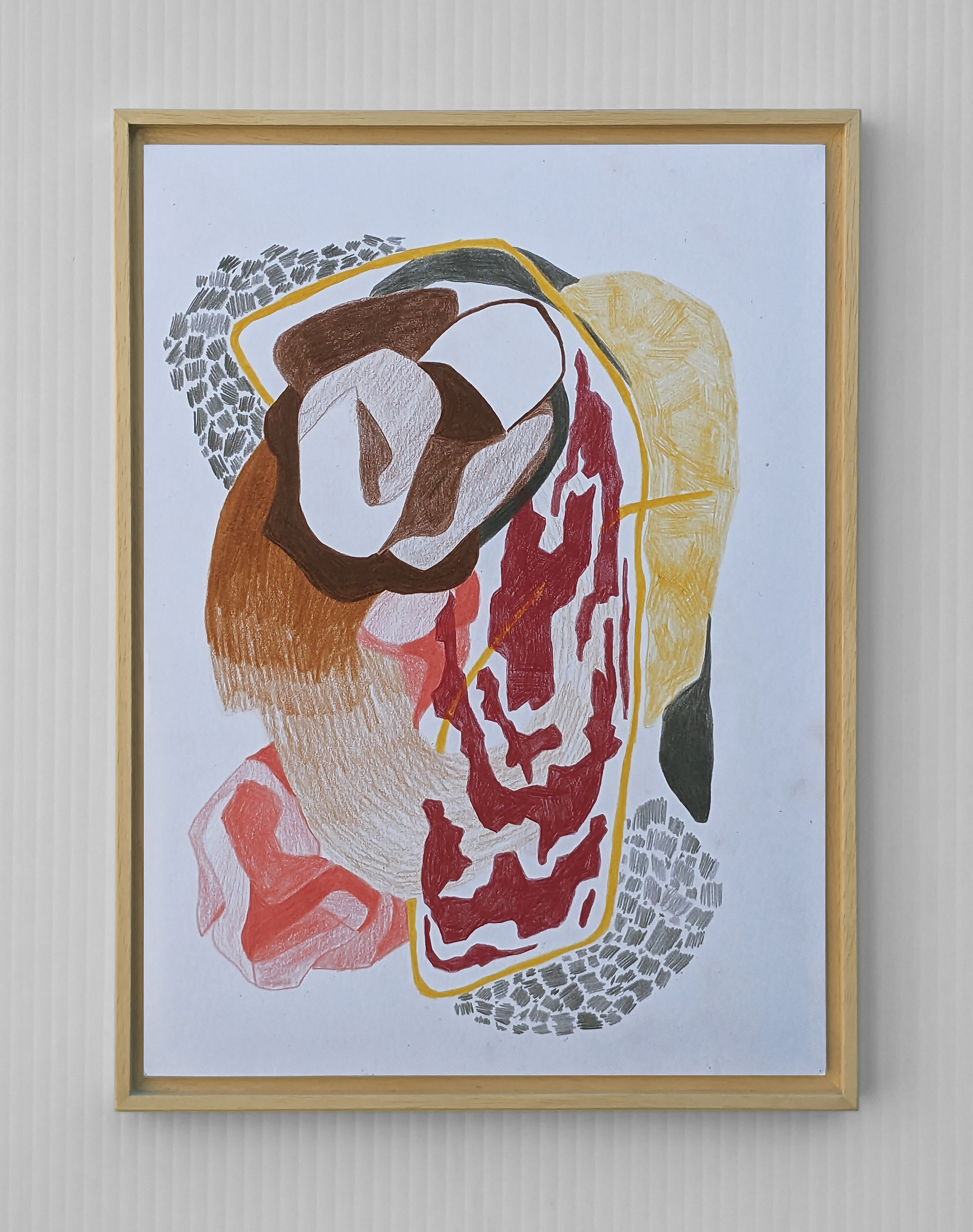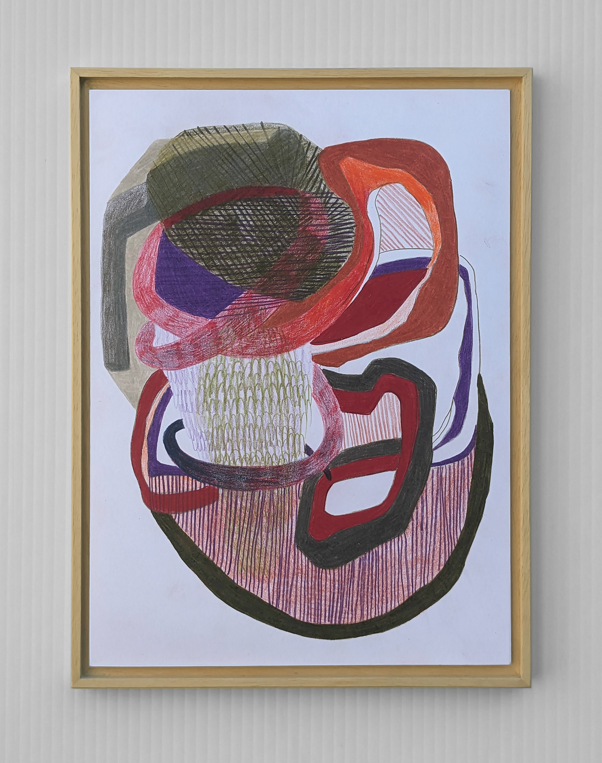 Dodo 2 (#1–5) emerged in the brief, quiet intervals of my second child’s naps. Made with colouring pencil, they contrast with my usual slow practice of egg tempera, where paint must be carefully mixed by hand each day. Quick, immediate, and playful, these drawings respond to the fleeting pauses of early parenthood. Their title, Dodo, the French word for nap and a gentle, childlike sound, reflects both their origins and the tender transitional moments that shaped them.